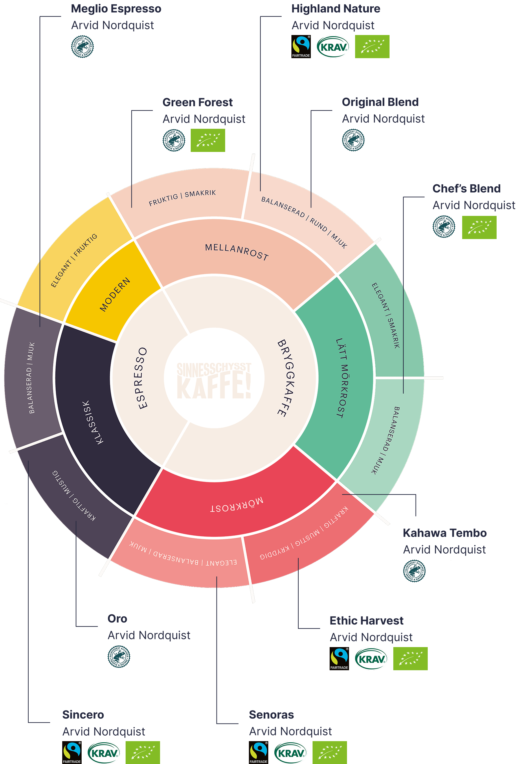 Great coffee tastes even better when it does good – both for you and for the planet. Arvid Nordquist, one of Sweden’s most sustainable coffee roasters, has been roasting coffee with care since 1884. All raw coffee comes from certified growers who care about both people and the environment – and it is of course climate compensated all the way to the cup.